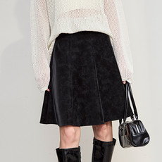 奥特莱斯外贸折扣清仓尾货高腰a字小黑裙女秋冬复古麂皮绒半身裙
