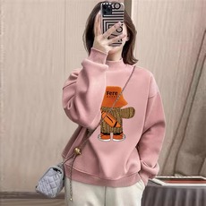 外贸大牌奢侈品牌专柜清仓加绒加厚冬季卫衣女时尚设计感印花绒衫