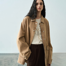 欧美复古设计感翻领水洗做旧女装宽松大码帅气牛仔衬衫外套