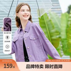 VL真维斯女装 秋季新款 时尚小个子净色翻领夹克休闲牛仔外套