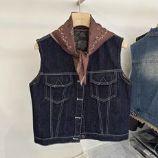 时尚丝巾明线工装牛仔马甲背心女春秋显瘦百搭叠穿马夹无袖短外套