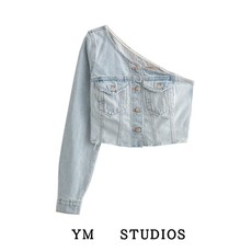 米娜家 欧洲站 2025秋双口袋时尚纽扣毛边牛仔短外套女 E536 520