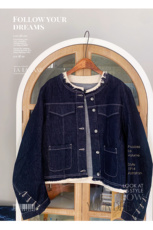YOYO-新款牛仔棉拼接设计立领长袖牛仔外套女韩系宽松上衣潮款