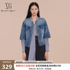 【XU ZHI】蕾虎宝石装饰牛仔圆领夹克2025秋季新款女装上衣