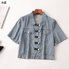 409179 夏外套 女牛仔短款短袖翻领断码清仓
