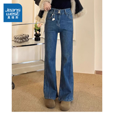 微喇裤牛仔女美式高腰马蹄浅色长裤小个子拖地直筒弹力怀旧喇叭裤