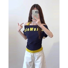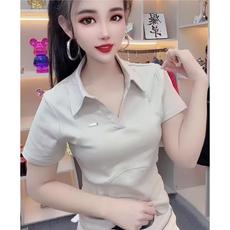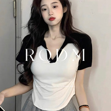 洋气百搭polo领短袖翻领t恤女夏季2025新款显瘦拼接修身显瘦上衣