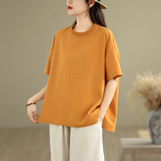 t恤女夏季纯棉新款上衣大码胖mm宽松显瘦短袖打底衫2025休闲女装