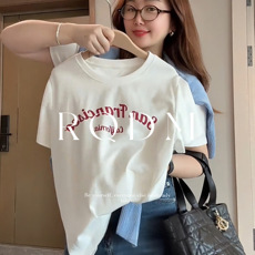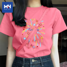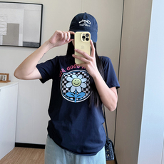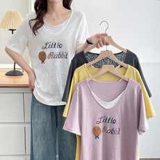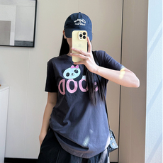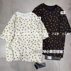 小王家23097夏女新款韩版宽松大码胖mm休闲慵懒风短袖印花T恤上衣