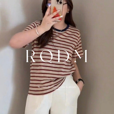 新款时尚休闲条纹短袖T恤女夏季宽松休闲显瘦圆领百搭上衣潮