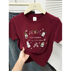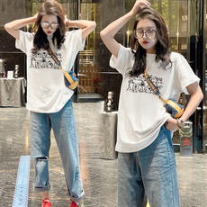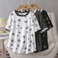 雪花棉夏季新款短袖t恤女装胖mm宽松休闲大码时尚百搭圆领上衣服
