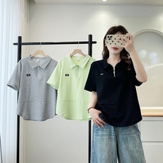 翠袖大码女装正肩翻领短袖T恤女夏季设计感胖mm遮肚显瘦休闲上衣
