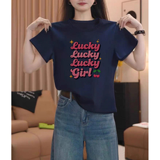 大码女装2025夏季新款胖MM修身显瘦百搭印花圆领正肩短袖T恤上衣