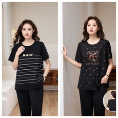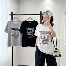 大码女装2025夏季新款胖MM卡通印花宽松显瘦圆领正肩短袖T恤上衣