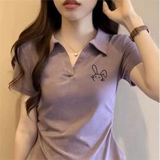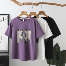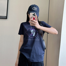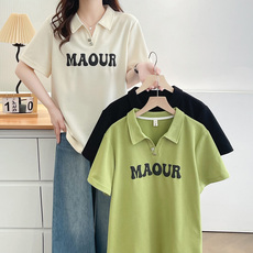 新款时尚休闲短袖t恤女POLO衫印花紫色夏显瘦百搭遮肚子上衣