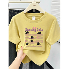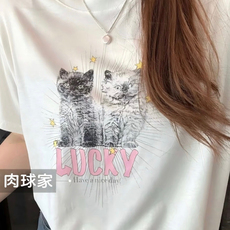 大码女装2025夏季新款胖MM专注本喵百搭显瘦圆领正肩短袖T恤上衣
