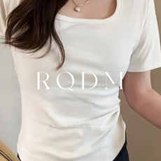 大码女装2025夏季新款胖MM夏日留白收腰显瘦方领正肩短袖T恤上衣