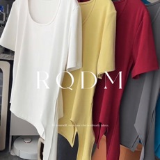大码女装2025夏季新款胖MM不规则遮肚子显瘦U领正肩短袖T恤上衣