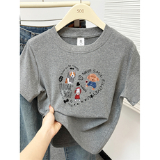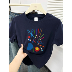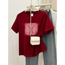 设计感爱心印花正肩圆领短袖T恤女装夏季大码胖MM时尚洋气显瘦半