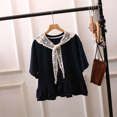 夏季文艺复古娃娃衫短袖T恤女上衣宽松百搭减龄甜美大码胖mm显瘦