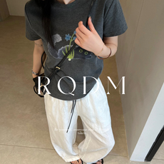 Milu家大码女装夏季设计感抽绳印花圆领正肩短袖t恤胖mm显瘦上衣