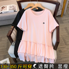 夏季大码女装短袖上衣t恤胖mm显瘦妈妈遮肚子加肥加大雪纺衫200斤
