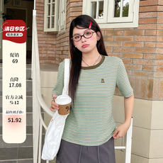 2025新款女装衣服条纹短袖显瘦正肩大码胖mm设计感独特超好看t恤