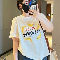 300斤大码女装胖mm基础款圆领香蕉印花百搭显瘦短袖T恤女遮肉上衣