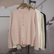 【绞花肌理】Tommy25秋冬新款女装慵懒风宽松圆领针织开衫外套