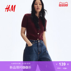 H&M女装毛针织衫2025年秋新款时尚气质绞花针织miu系开衫1289600