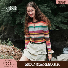 TeenieWeenie小熊女装针织衫2025秋季新款青春活力多巴胺条纹开衫