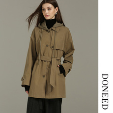 篙端线!细腻滑爽抗皱 挺括有型立体感翻领中长款卡其风衣外套女