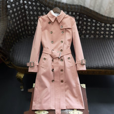 中长麂皮绒外套秋新款外贸女装百搭双排扣收腰系带长袖风衣15580