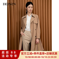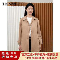 HONRN/红人驼色系带收腰通勤风衣外套上衣女中长款春秋HI33OF323