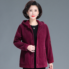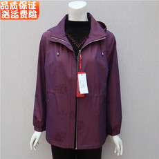 中年女洋气妈妈秋装休闲风衣外套中老年女装中长款连帽夹克上衣