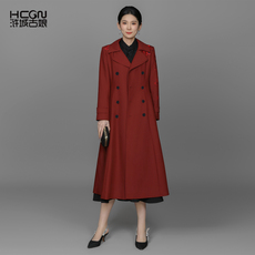 EAM STUDIO高级无领西装料风衣外套女双排扣中长款气质大衣春秋装