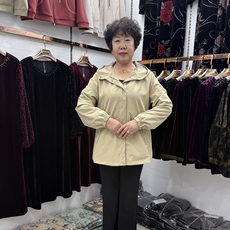 中老年女装秋装休闲连帽风衣外套中长款2025宽松妈妈卡其色夹克新