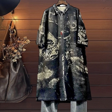 秋款外套复古V领大口袋牛仔外套宽松大版中长款风衣外套胖mm棉质