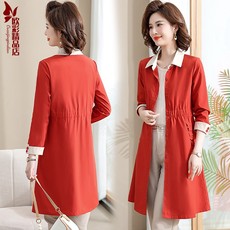 妈妈风衣中长款春秋气质时尚新款中老年女装高端大码收腰秋季外套