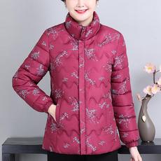 中年妈妈冬季加厚棉衣外套短款宽松小棉袄中老年人冬装印花棉服女