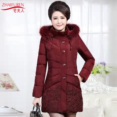 本命年妈妈冬装羽绒棉服中长款中老年人女奶奶秋冬季红色棉袄外套