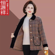 妈妈秋冬装加厚保暖格子毛呢外套中老年女装洋气翻领棉衣呢子上衣