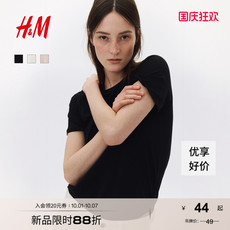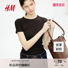 HM女装T恤2025秋季新款时尚休闲圆领简约修身显瘦短袖上衣1142908