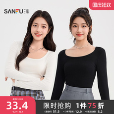 三福打底衫女2025新款秋季方领修身显瘦长袖t恤通勤内搭上衣女装