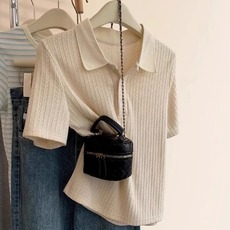 宽松显瘦【80-200斤】POLO领冰丝短袖T恤女夏设计感麦穗正肩上衣