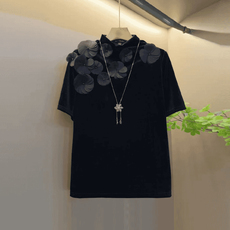宽松显瘦【80-200斤】洋气镂空冰丝针织短袖女夏新款拼色圆领T恤