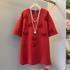 甜觅特大码女装春夏装胖mm300斤洋气宽松中长款短袖新年红色卫衣