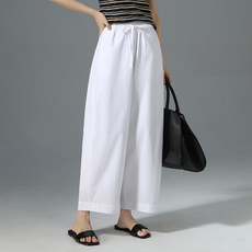 白色裤子阔腿裤女夏薄款休闲裤2025新款九分高腰直筒裤舒柔特女裤