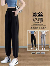 冰丝裤女夏季薄款高腰垂感九分裤女士大码妈妈装女裤小个子哈伦裤