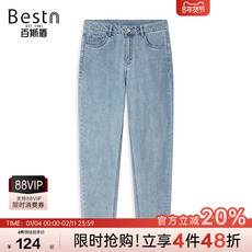 百斯盾女装牛仔裤2025年夏季新款后松紧腰棉软质感九分铅直筒女裤